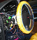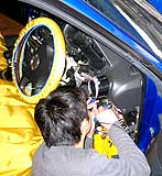 重要な配線をチェックし、セキュリティーシステム装着の準備をします。実はここがプロの腕の見せ所なんです!